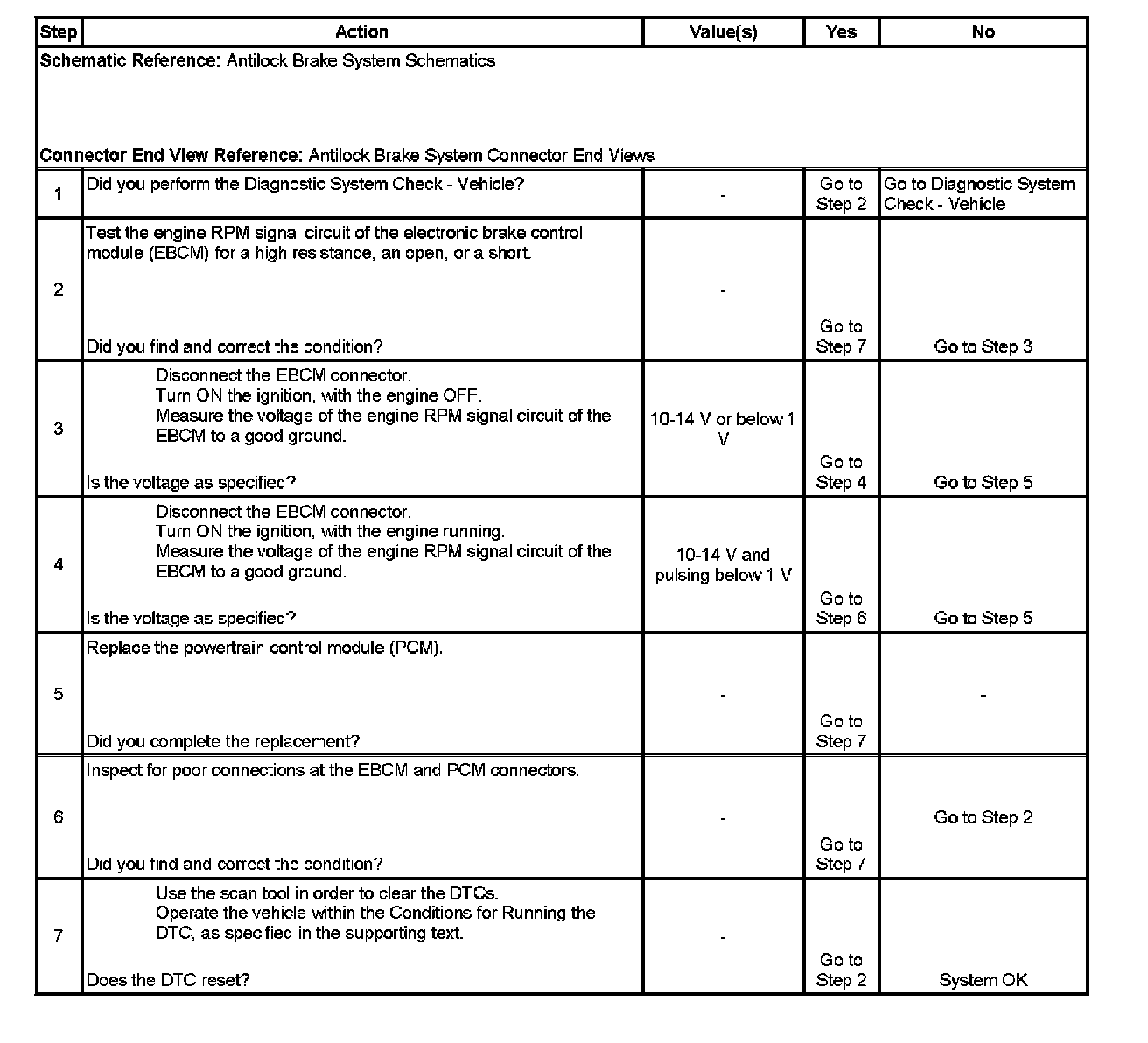 2. Test the engine RPM signal circuits of the EBCM for a high resistance, an open, or a short.