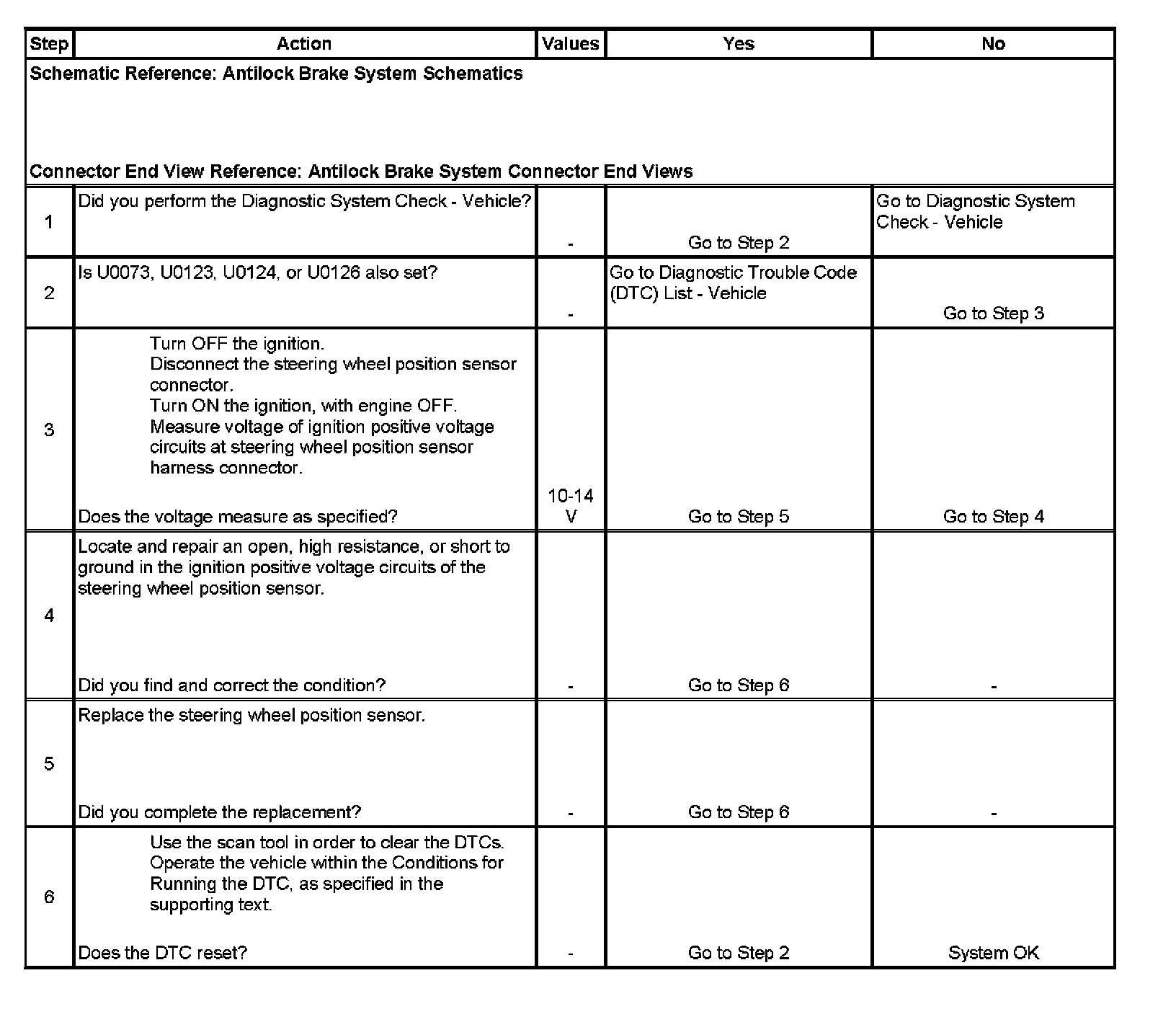 3. This step tests for correct voltage of steering wheel position sensor ignition positive voltage circuits.