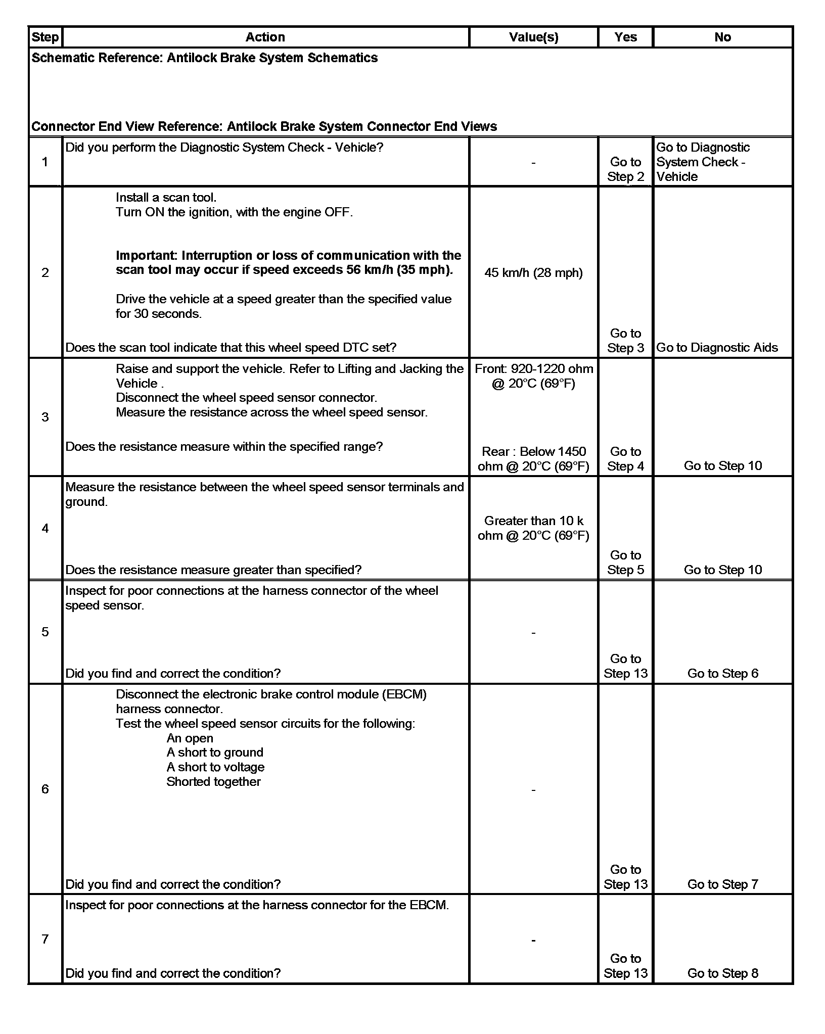 3. This step tests the wheel speed sensor for the proper resistance value.