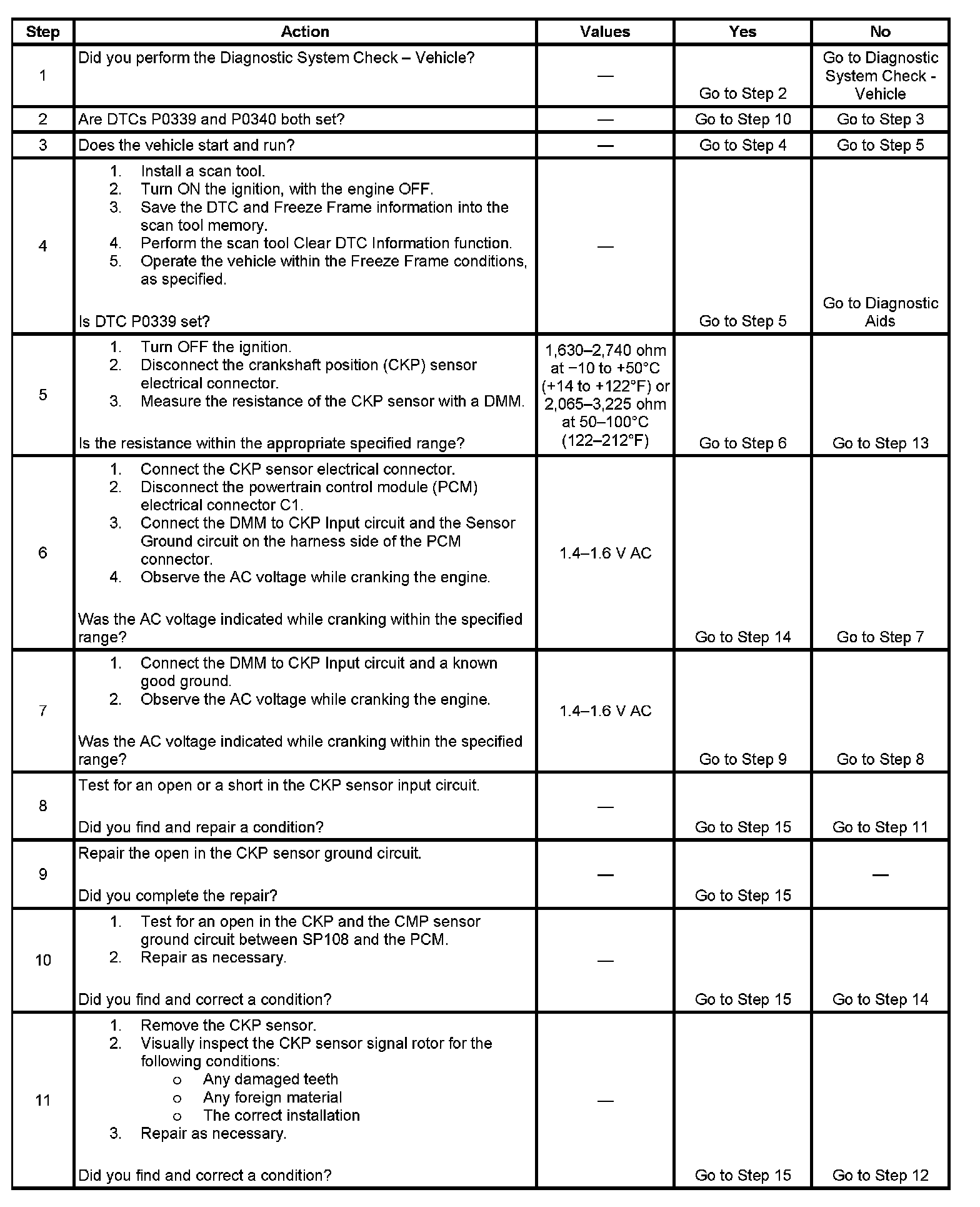 - A DTC P0339 that sets while driving and checks OK may be caused by inadequate CKP sensor circuit shielding. Check that the CKP sensor circuit is properly shielded and that the drain wire is fastened securely to ground.