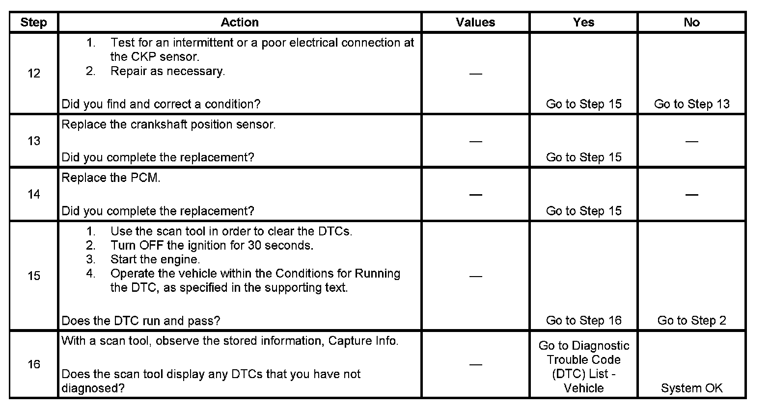 6. This step tests the CKP sensor output signal and electrical circuit to the PCM.