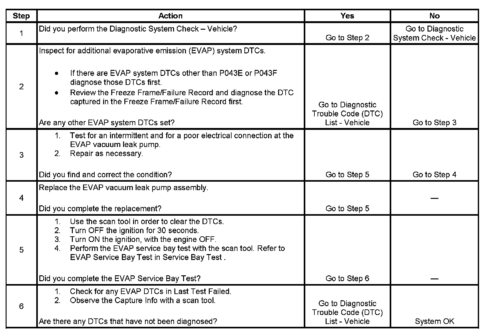 5. This step uses the EVAP Service Bay test to verify the correct operation of the EVAP vent solenoid, the EVAP purge solenoid, and the EVAP vacuum leak pump. Using the Service Bay test also tests for leaks by sealing the system and monitoring the FTP sensor.