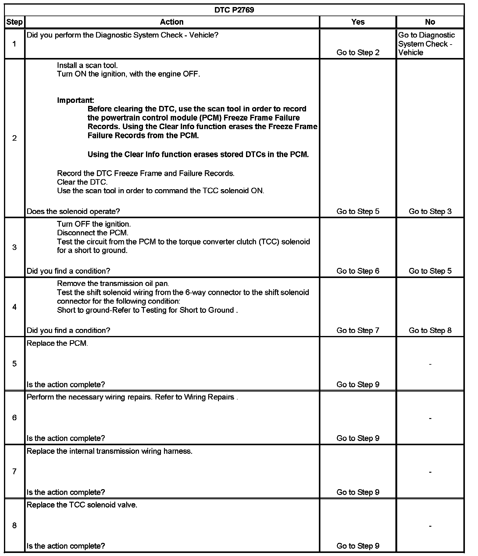 When the PCM detects a continuous short to ground in the TCC solenoid valve circuit, then DTC P2769 sets.