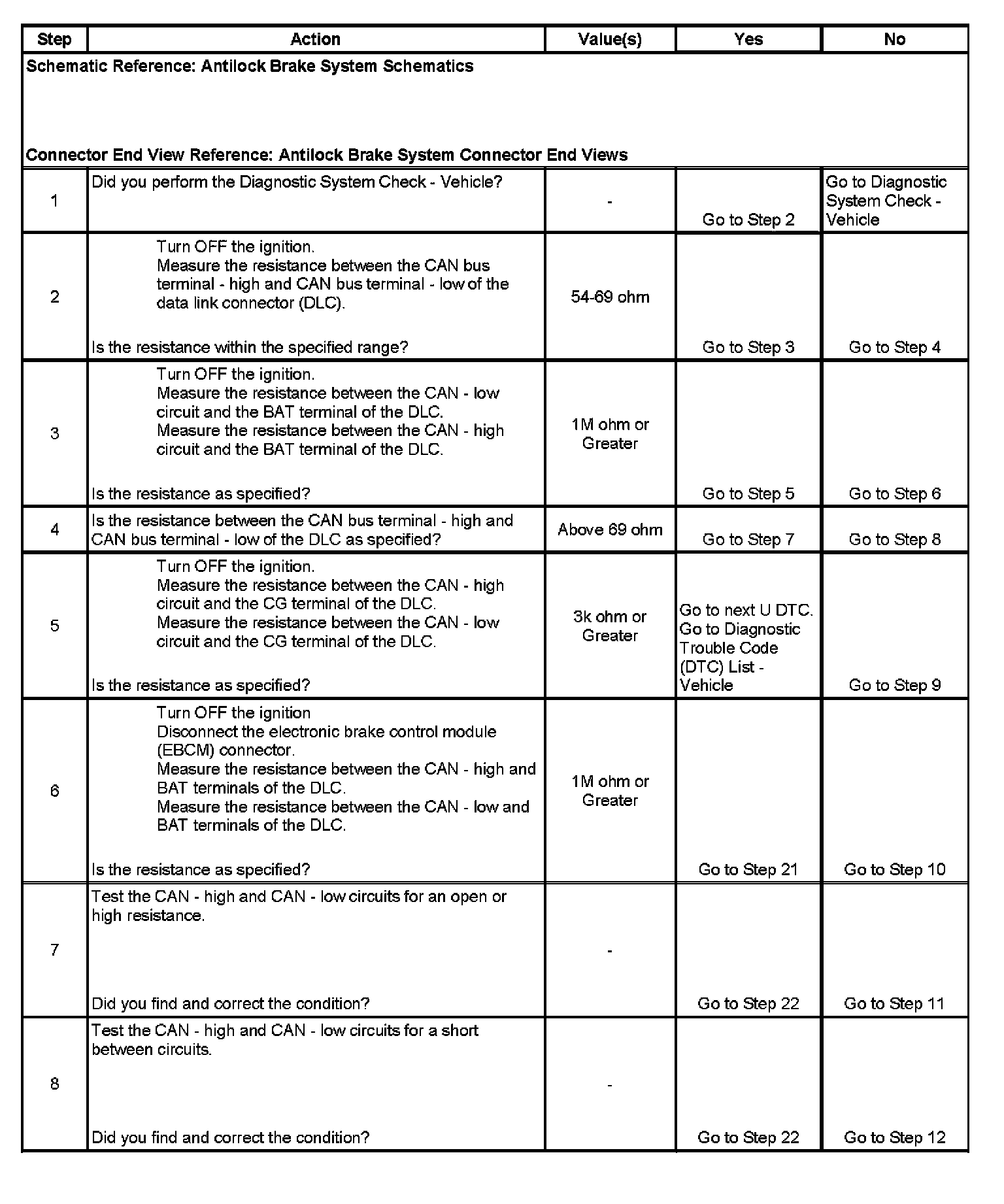8. Test the CAN - high and CAN - low circuits for a short between circuits.