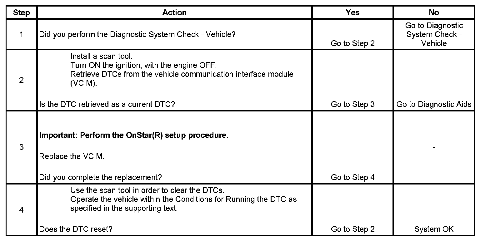 * If this DTC is retrieved as both a current and history DTC, replace the VCIM.