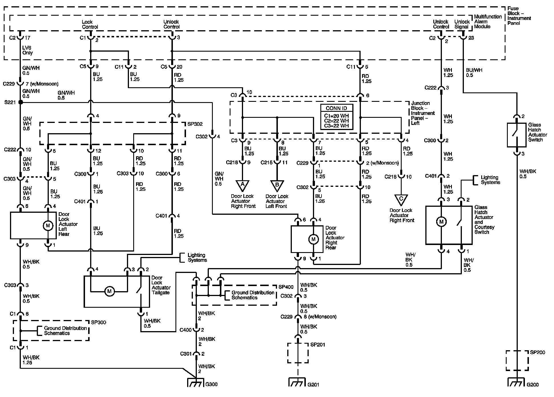 Locations: The locations for the Connectors, Grounds, Splices, and Grommets shown within these diagrams can be found via their numbers at Vehicle Locations. Locations