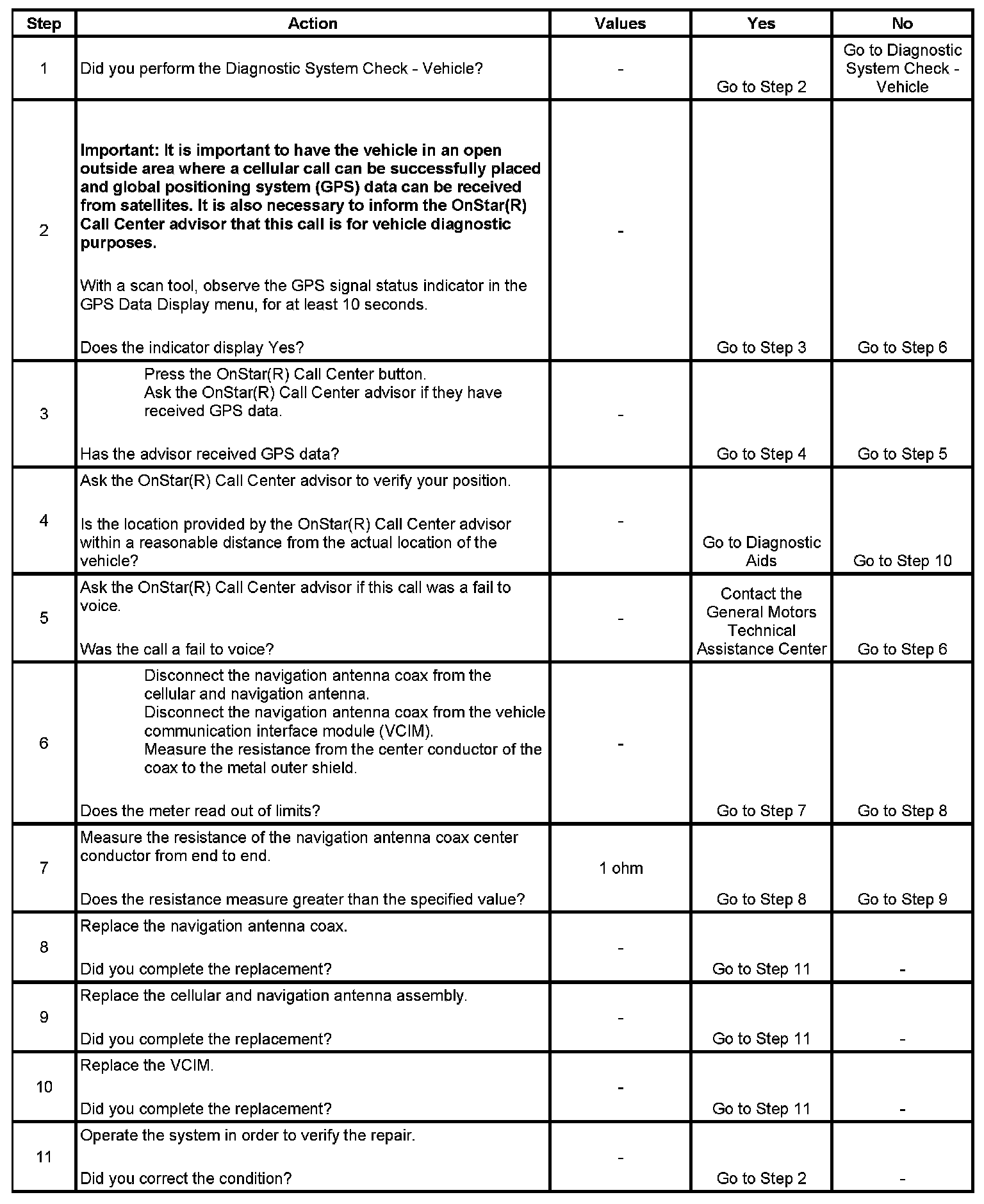 * Inaccurate or aged GPS position concerns made by a customer which are no longer present may have been due to the temporary loss of GPS signal reception by the vehicle. Conditions such as driving through tunnels or parking structures while making an OnStar(R) keypress will restrict the navigation antenna from a clear view of the satellites in the sky and may have caused this temporary data loss.