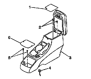 6. Install the console box damper (1) to the rear compartment of the rear console (3).