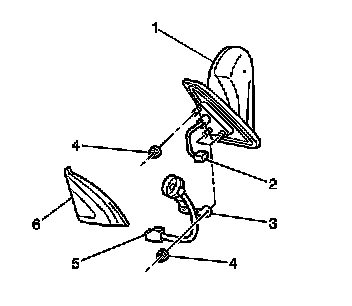 4. Disconnect the outside rearview mirror electrical connector (2).