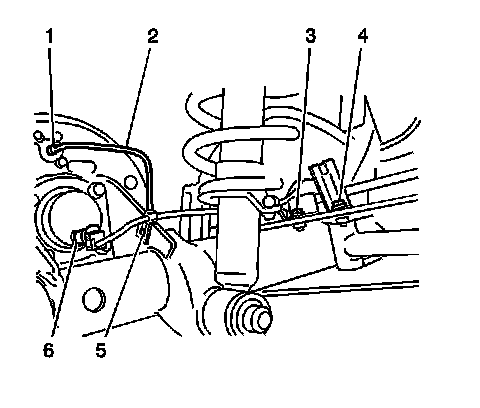 1. Disconnect the electrical connector (6) from the wheel speed sensor.