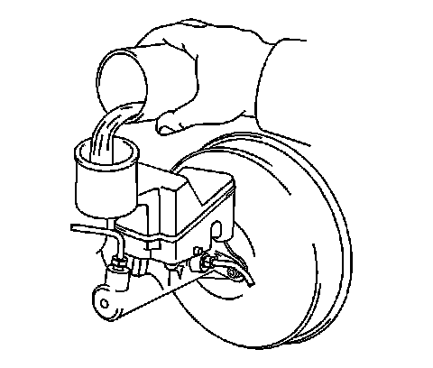 Caution: Do not overfill the brake fluid reservoir. Overfilling the brake fluid reservoir may cause the brake fluid to overflow onto the engine exhaust components during brake system service. The brake fluid is flammable and may cause a fire and personal injury if the brake fluid contacts the engine exhaust system components.