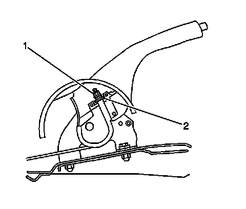 8. Turn the adjusting nut (2) in order to adjust the park brake lever travel.
