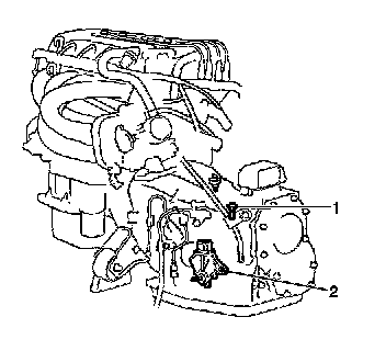 The park/neutral position (PNP) switch (2) is mounted to the transaxle. Whenever the manual selector lever is placed in either the Park (P) or Neutral (N) position, the PNP switch closes and provides a ground to the cruise control module. The cruise control module disengages cruise control system operation as soon as this ground signal is sensed. For PNP switch replacement and adjustment procedures, refer to Park/Neutral Position Switch for the MU4 transmission.