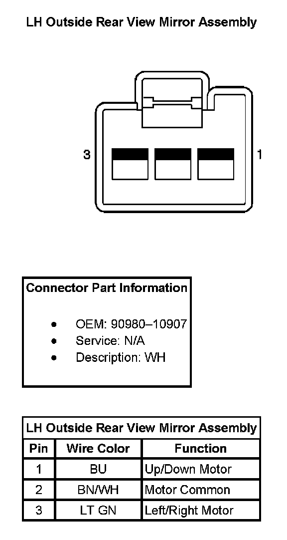 LH Outside Rear View Mirror Assembly: