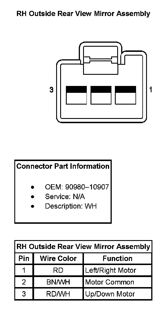 RH Outside Rear View Mirror Assembly:
