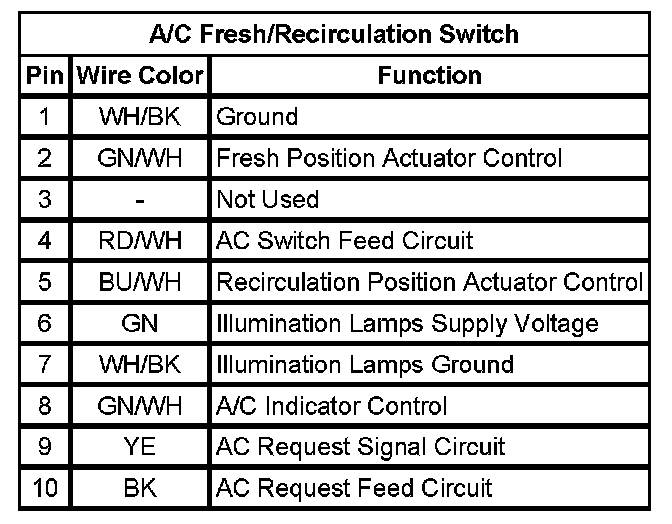 A/C Fresh/Recirculation Switch