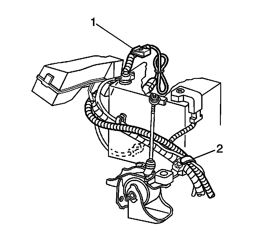 2. Unclip the heater wire harness below on the outside of the battery (2).