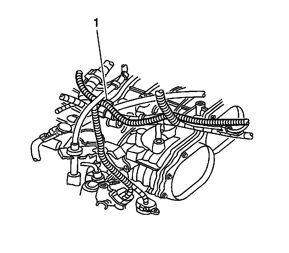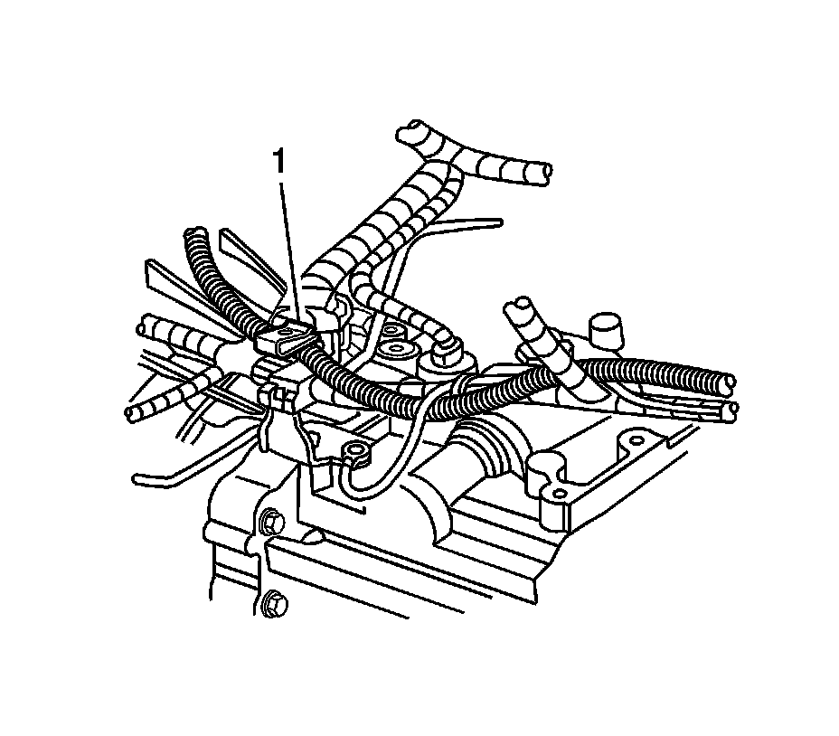 6. On vehicles with automatic transmission, route the heater wire harness (1), as shown.