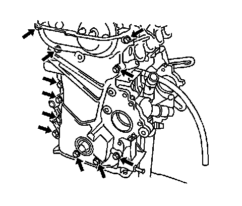 Remove the 12 timing chain housing bolts.
