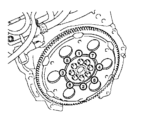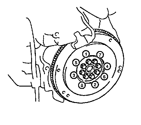 Important: Do not attempt to repair the welded areas that retain the ring gear to the flywheel plate. Install a new flywheel.