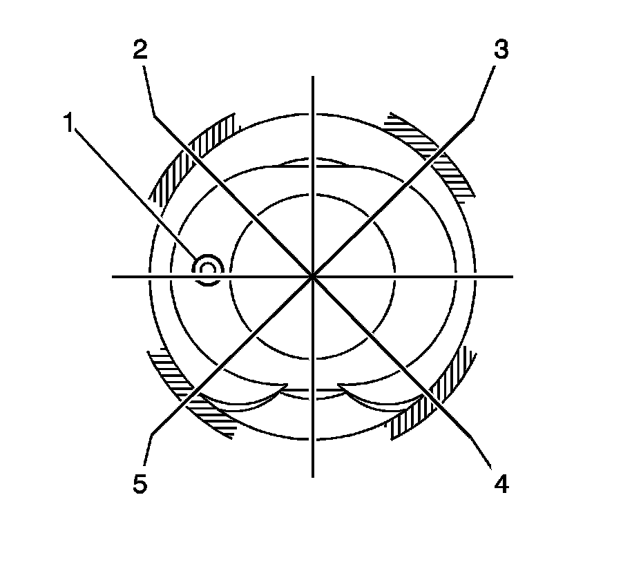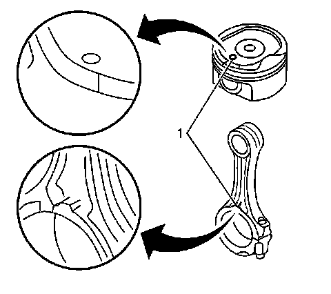 Important: Install the piston onto the connecting rod with the marks (1) oriented toward the front of the engine.