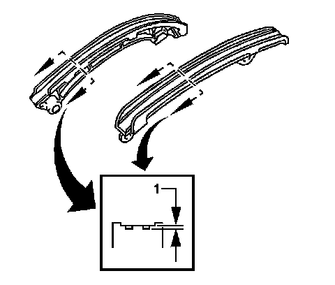 2. Replace the timing chain guides if wear exceeds 1.0 mm (0.039 in) (1).