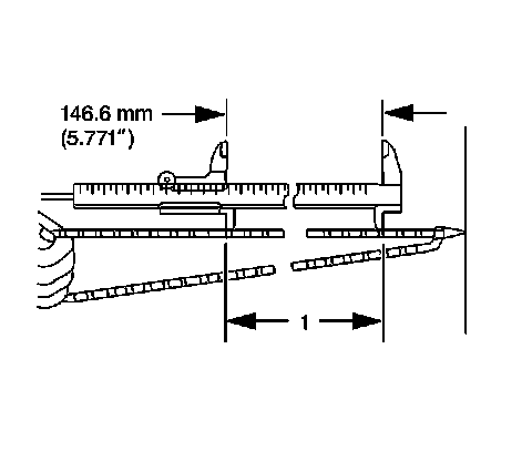 4. Use a Vernier caliper and measure the length of 16 links with the timing chain fully stretched (1).