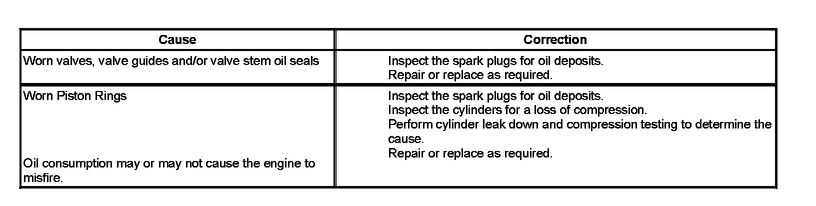 Base Engine Misfire With Excessive Oil Consumption: