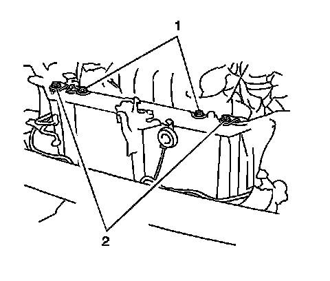 4. Install the radiator support brackets. Secure each bracket with the bolts (2).