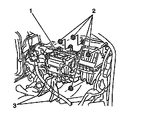 1. Install the HVAC module assembly (1) to the vehicle.