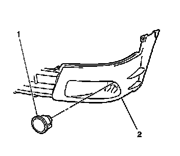 2. Install the fog lamp (1) to the front bumper fascia (2).