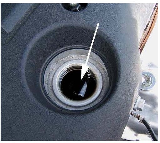 Use care when inserting oil fill devices into the camshaft cover. Forcefully inserting oil fill devices or funnels into the oil fill hole may result in baffle damage during the oil fill process. It the baffle does become damaged, repair it to prevent any additional engine damage from occurring.