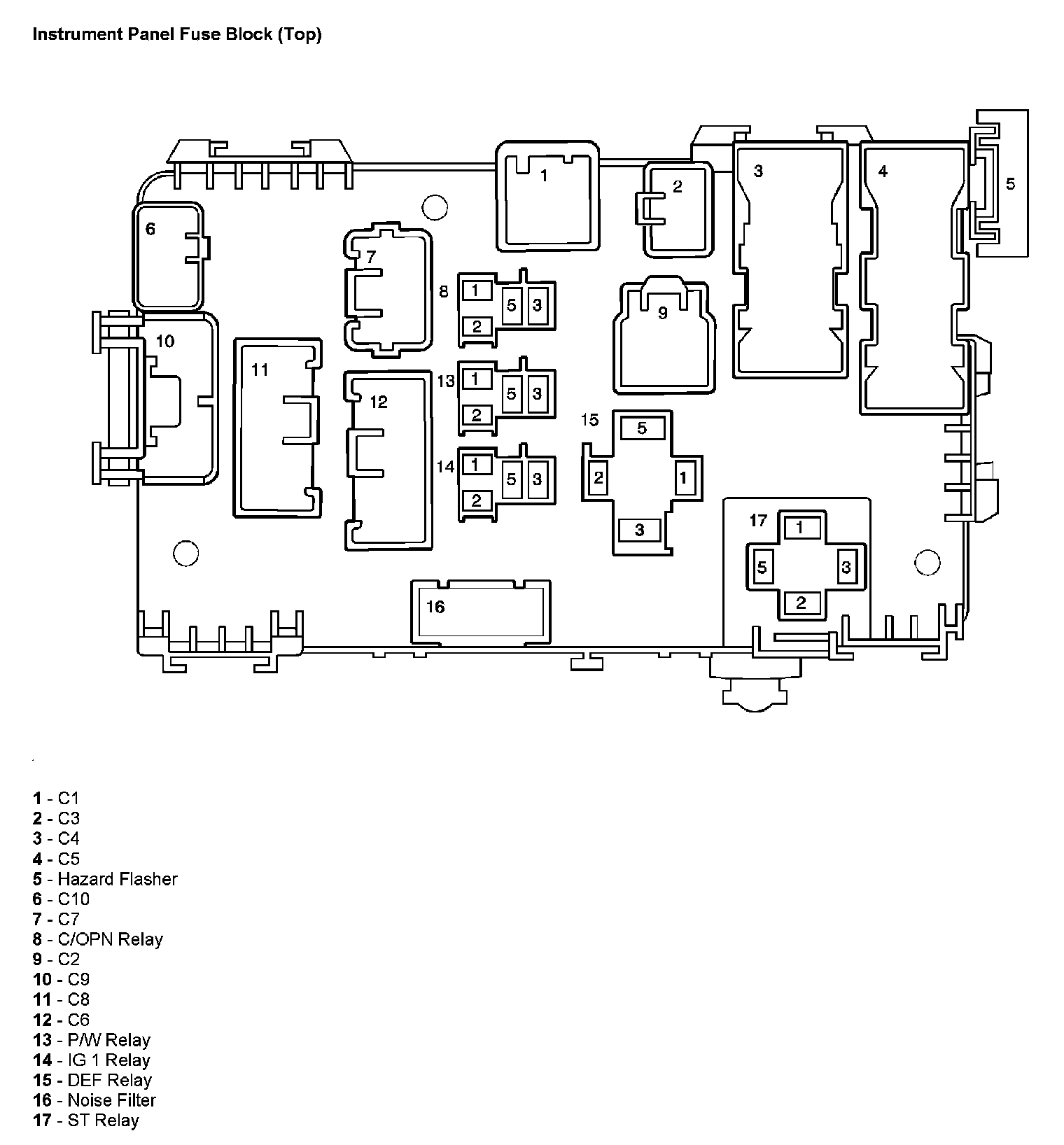 Instrument Panel Fuse Block (Top):