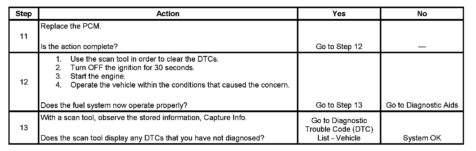 The numbers below refer to the step numbers on the diagnostic table.