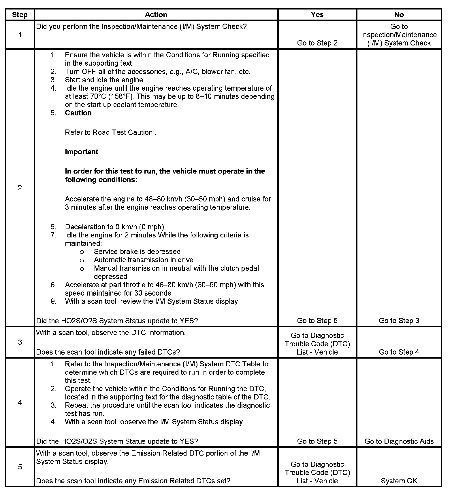 5. The I/M System Status only reports on whether or not a diagnostic has run, not what the outcome of the test was. If any Emission Related DTC sets after the tests are complete, the DTC will require diagnosis.