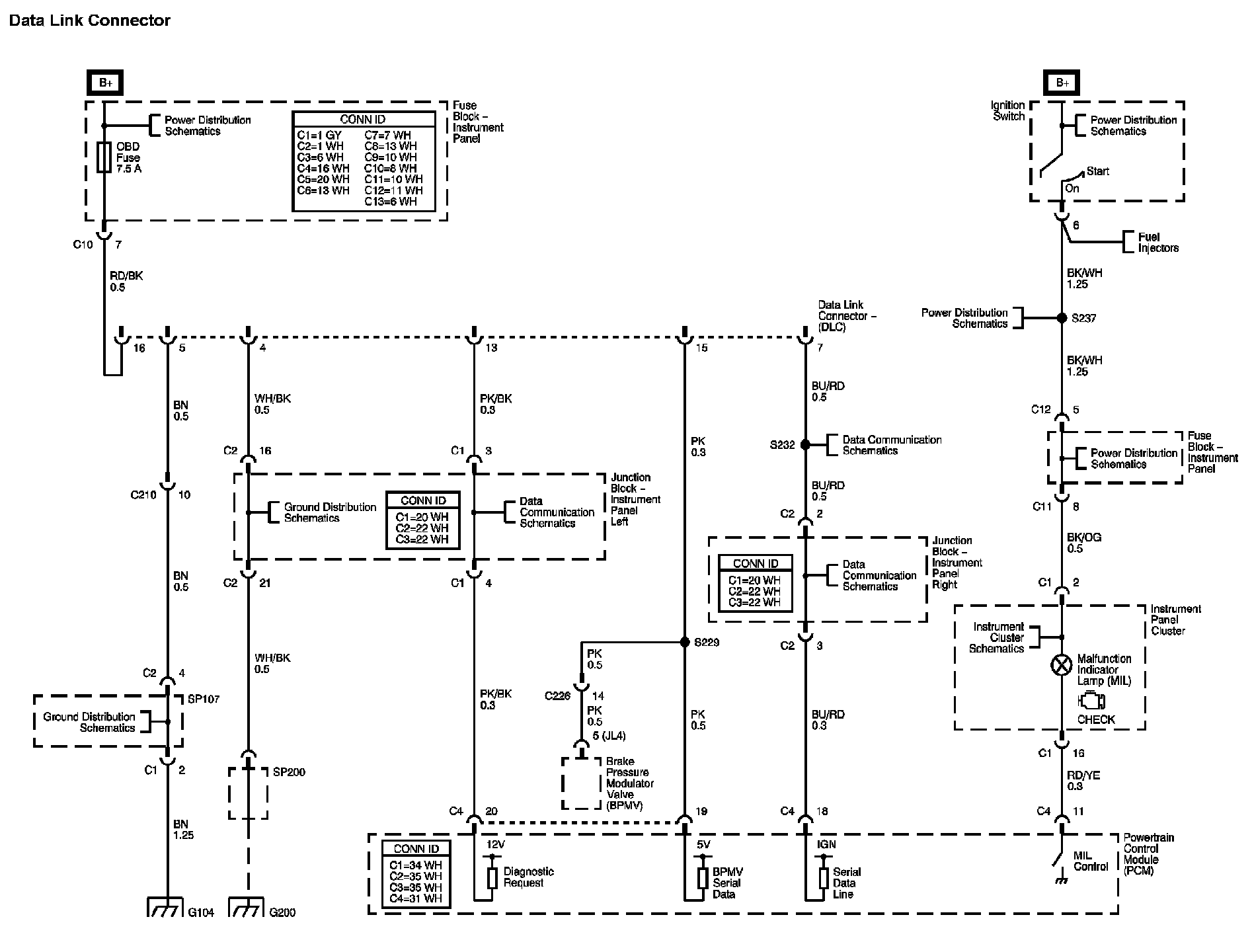 Locations: The locations for the Connectors, Grounds, Splices, and Grommets shown within these diagrams can be found via their numbers at Vehicle Locations. Locations