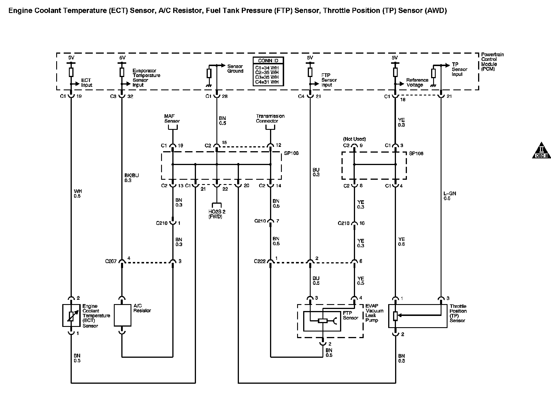 ECT Sensor, FTP Sensor, TP Sensor, A/C Resistor (AWD)
