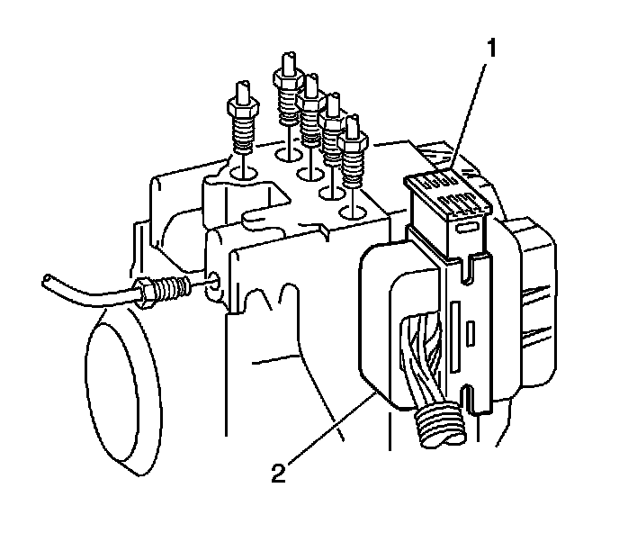 1. Release the electronic brake control module (EBCM) harness connector lock lever (1).