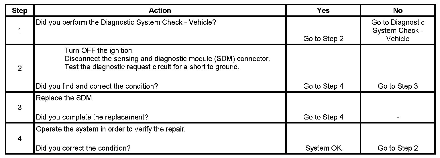 * A short to ground in the diagnostic request circuit