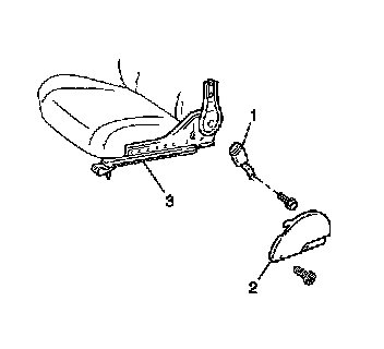 2. Install the inner adjuster finish cover (2) to the front seat. Secure the cover with the screw.