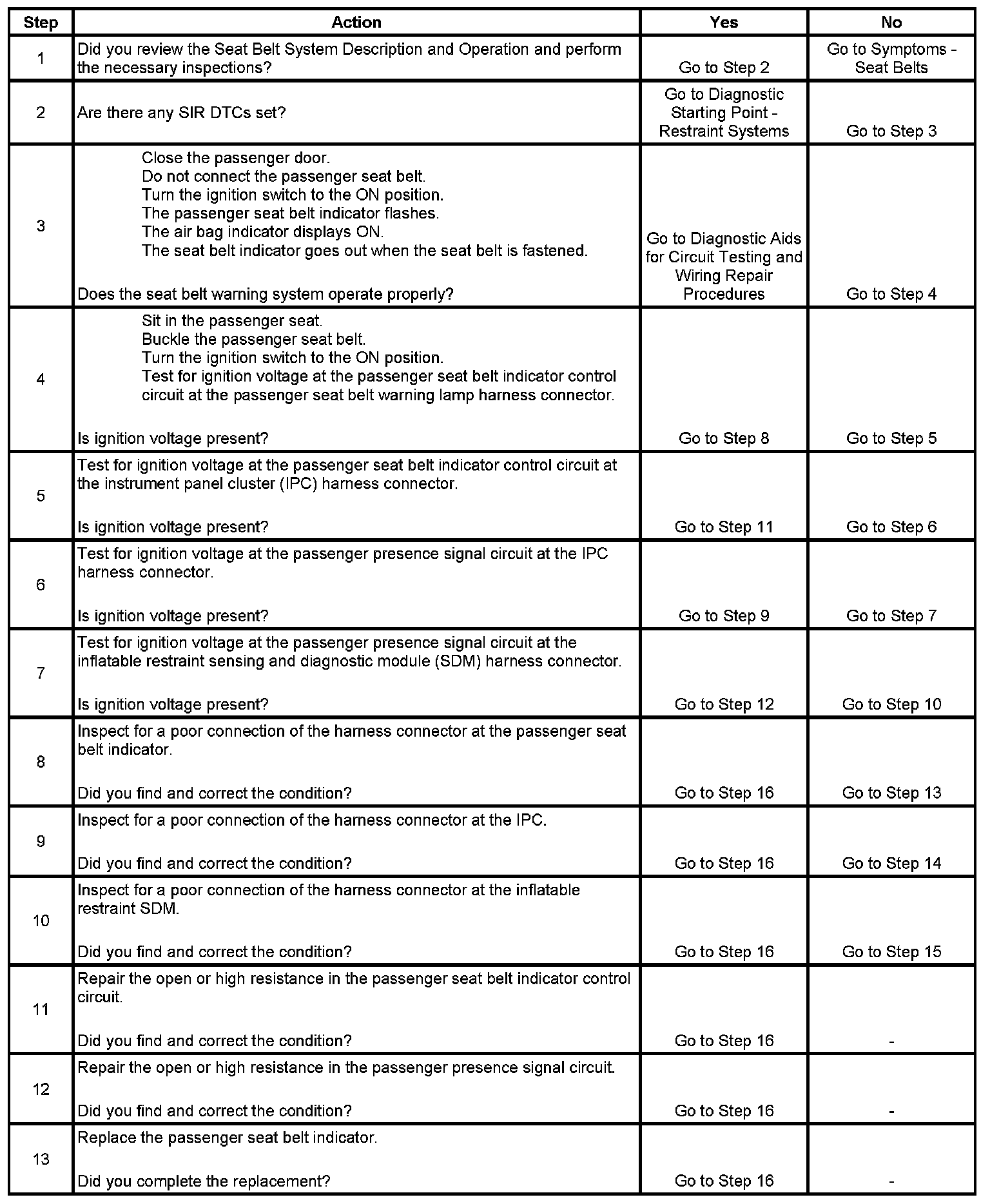 Fasten Safety Belt Indicator/Chime Always On (Passenger)