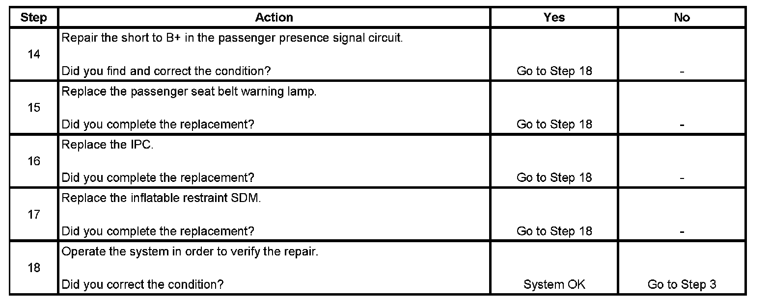 Fasten Safety Belt Indicator/Chime Inoperative (Passenger)