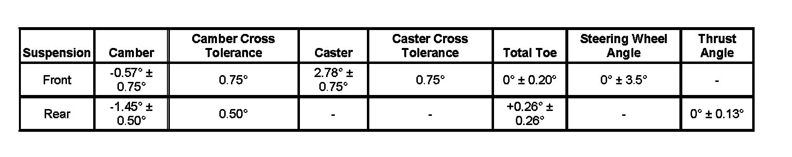 Wheel Alignment Specifications