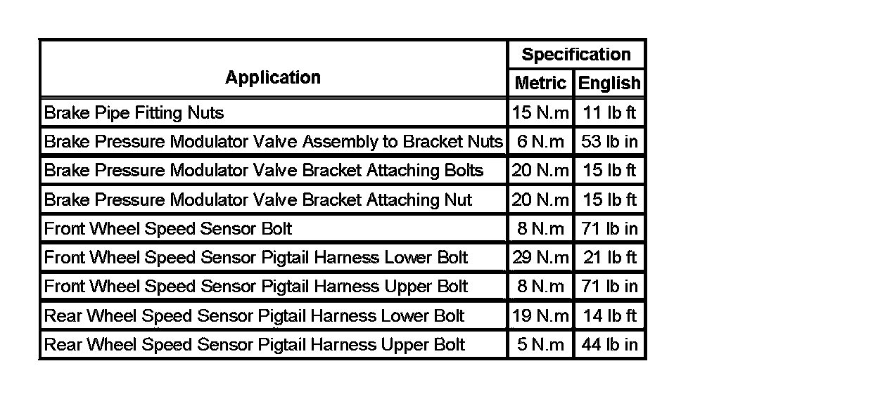 Fastener Tightening Specifications: