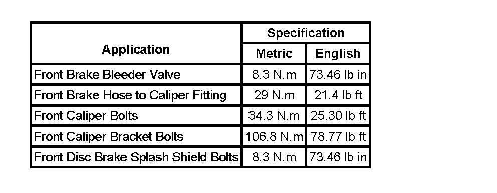 Fastener Tightening Specifications: