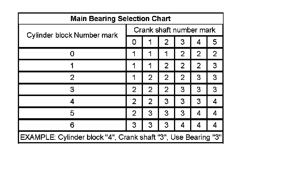 Main Bearing Selection Chart: