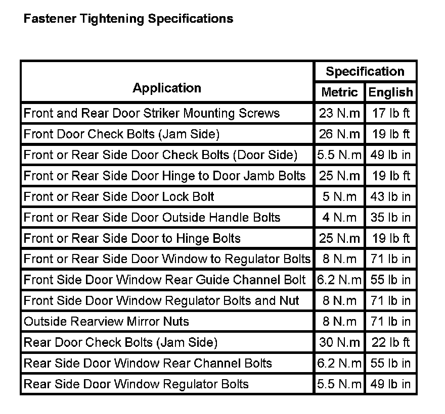 Fastener Tightening Specifications: