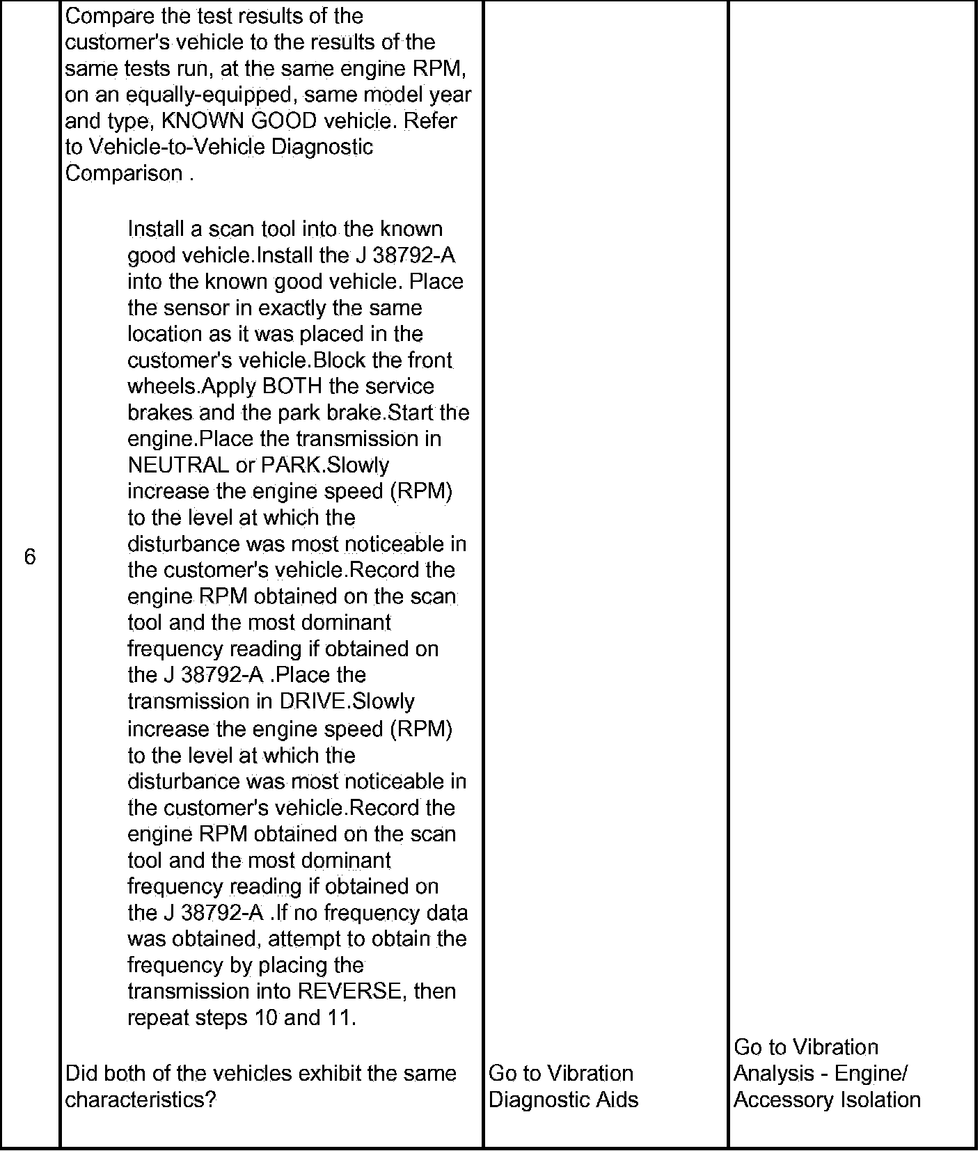 6. Making comparisons of the customer's vehicle with an equally equipped, same model year and type, KNOWN GOOD vehicle will help determine if certain disturbances may be characteristic of a vehicle design.