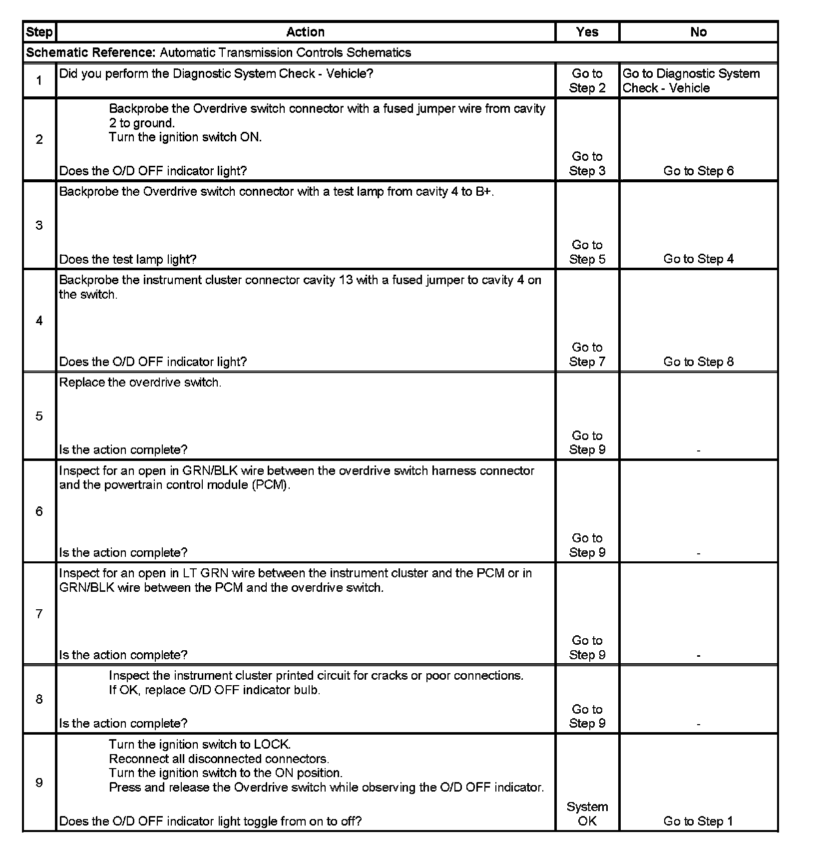 3. This step checks the ground circuit and the Overdrive switch.