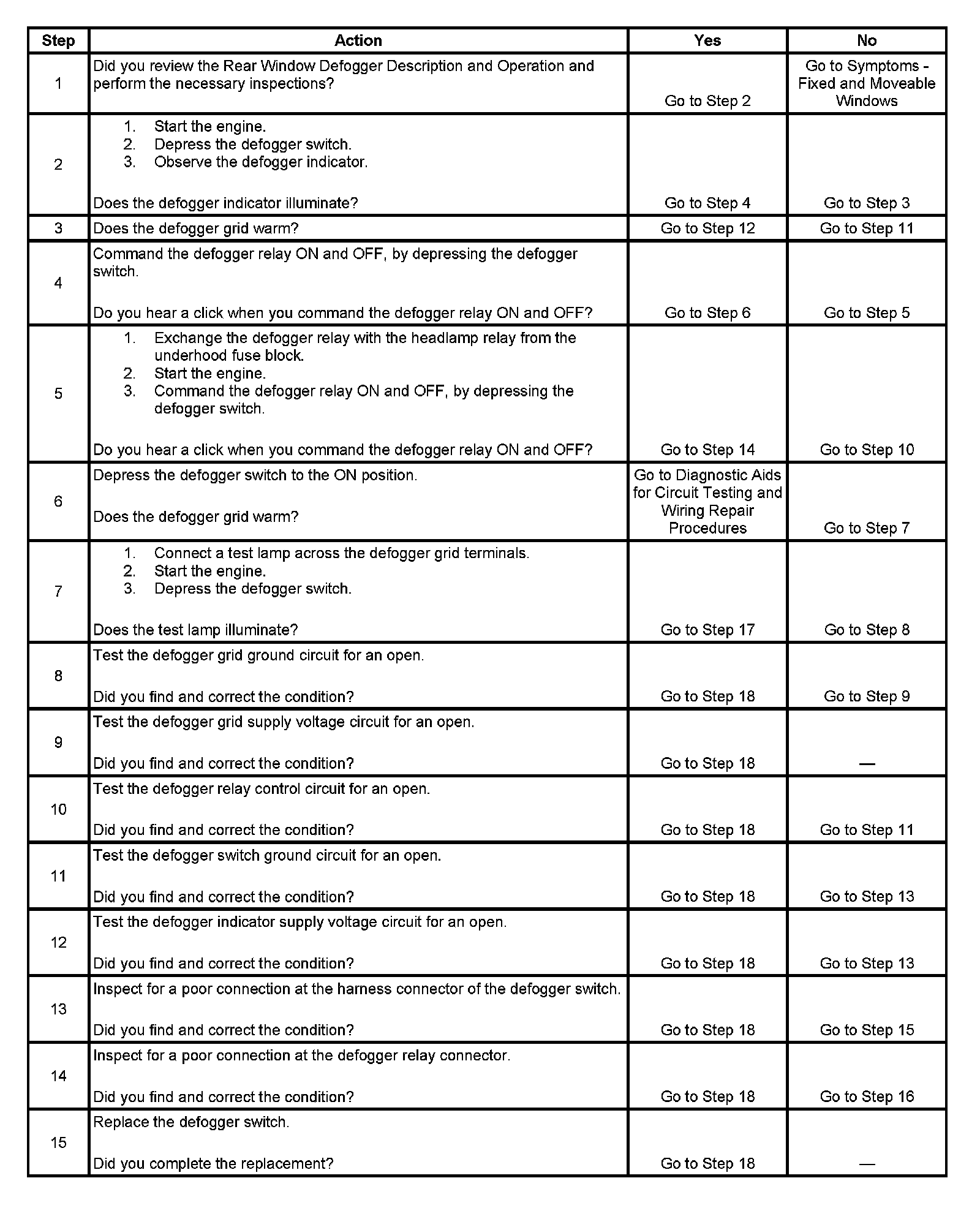 REAR WINDOW DEFOGGER INOPERATIVE